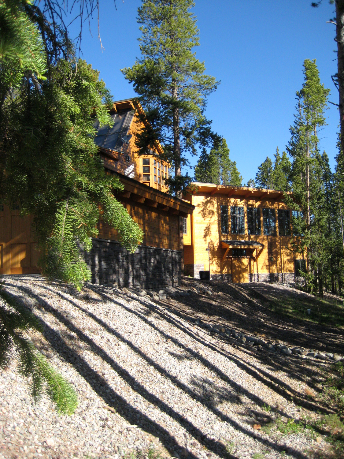 This project was an addition to an old eccentric ski challet. Repetition of the existing structurual modules provided a textural language between the old and new. We fit maximum programming into an affordable surround with ample privacy within the site. Connection with nature, at both the macro and micro scale, was an important part of the articulation.